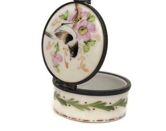 French Porcelain Pill Box. Hand Painted Porcelain. Antique Pill Box.