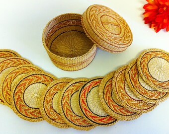 Vintage Wicker Coaster Set