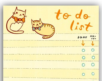Cat TO DO LIST notepad by boygirlparty, bowtie kitty cat note pad memo list organizer - cat stationery office gift