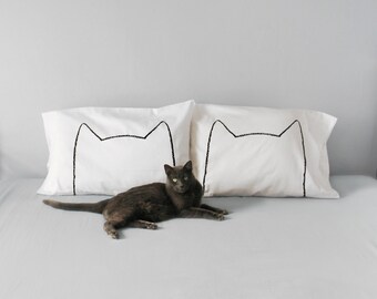Cat Lover Gift - CatNap Pillow Case Set - cat home decor - women gift - cotton anniversary gift for her - unique gift - cat obsessed lady