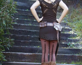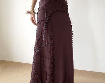 Boho long maxi skirt, multiway one shoulder jersey dress with freehand serging, brown or pick your color - Wilma