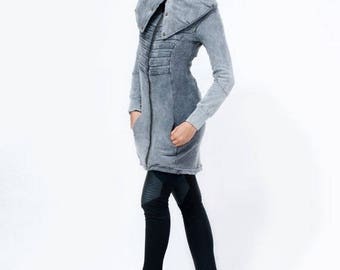 Long jacket, Long coat,Pixie style, Festivals, Post-Apocalyptic,Burning Man, Steam Punk, High Collar, Boho, Chic Clothing, Mad Max