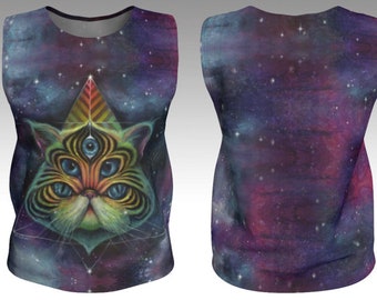 Intergalactic Feline - Unisex Tank Top, wearable art, cat shirt, cat tank, space cat, galaxy art, third eye art, trippy art, visionary art