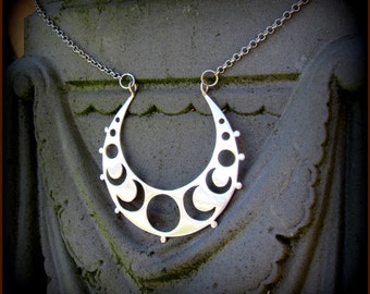 Eclipse Moon Necklace ~ Silver Crescent Moon Pendant ~ Moon Phase ~ Occult Witchy Pagan Tribal Fusion Belly Dance Goddess Witchcraft Jewelry