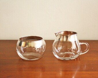 Vintage pair of platinum silver trimmed sugar and creamer, Libbey glassware