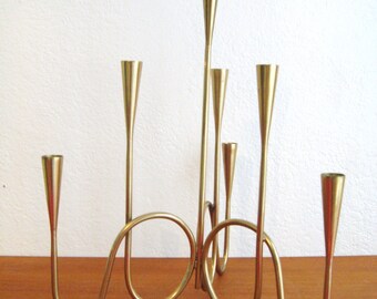 60s Mid century MODERN Brass Tone Swedish CANDLE HOLDER