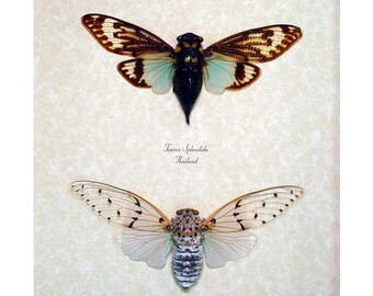 Real Framed Blue and White Cicada Set Conservation Shadowbox Display 7833