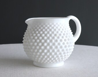Vintage Fenton Hobnail Milk Glass Jug or Pitcher - White Glass Vase - 1960s