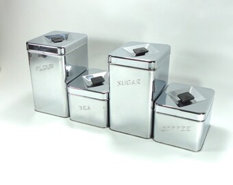 1950s Vintage Chrome Kitchen Canisters - Canette by Masterware Set of 4