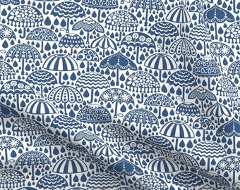 Umbrella Fabric - Folky Vintage Brollies By Christinewitte- Scandinavian Scandi Mod Blue White Cotton Fabric By The Yard With Spoonflower