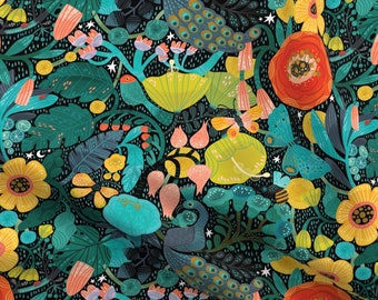 Peacock Floral Fabric - Bohemian Bop- Large Scale By Cynthiafrenette - Mod Floral Exotic Animal Cotton Fabric By The Yard With Spoonflower