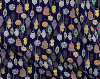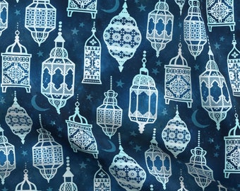 Moroccan Lanterns Fabric - Marrakech Nights By Adenaj - Moroccan Nights Watercolor Blue Lantern Cotton Fabric By The Yard With Spoonflower