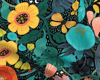 Bohemian Tropical Floral Green Yellow Fabric - Bohemian Bop By Cynthiafrenette - Bohemian Cotton Fabric By The Yard With Spoonflower