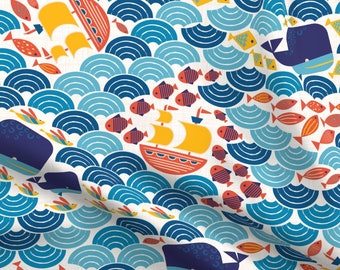 Nuggetdc Japanese Inspired Blue Ocean Fabric - Ocean Nugget By Meliszawang - Nuggetdc Fish Cotton Fabric By The Yard With Spoonflower