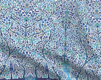 Blue Floral Islamic Fabric - Garden Of Paradise 1h By Muhlenkott - Islamic Cotton Fabric By The Yard With Spoonflower