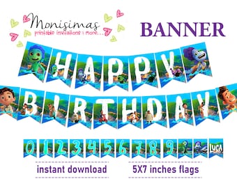 happy Birthday Banner, LUCA DISNEYParty, Printables, Luca banner PDF instant download