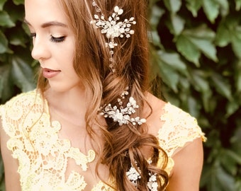 Bridal hair vine Long hair vine Wedding hair vine Flower hair vine Wedding headpiece Pearl hair vine Bridal hairpiece Crystal hair vine