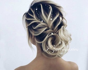 Simple Wedding Pearl Hair Vine White Ivory Bridal Pearl Hair Vine Rose gold Headpiece Headband Minimalistic Hairpiece Long Thin Hair Vine