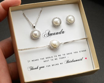 Pearl fresh water real Bridesmaid gift set bridesmaid earrings Bridal Earrings Bracelet Zirconia Earrings Custom Wedding Jewelry Set