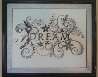 HandMade Paper Quilled Canvas 20" X 24" in antique frame. "Dream"