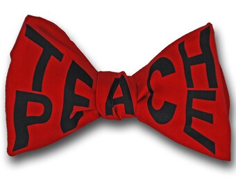 Men's SILK TEACH PEACE Bowtie Peace, Reach Peace, Beach Peace Bow Tie Single Bow tie with 4 Different Tying Options for 4 different looks