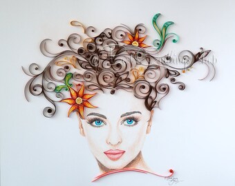 Original Quilling Art and Drawing Art: "Queen of Beauty" Colourful Paper Art, Wall Art, Framed, Hand drawn Wall Deco