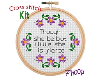 Though She Be But Little, She Is Fierce Cross Stitch Kit. Literature Quote Cross Stitch. Shakespeare. Shakespeare Quote. Modern Kit.