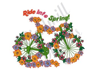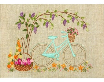 Ride Into Spring Flower Bike - Machine Embroidery Design, Embroidery Designs, Embroidery Patterns, Embroidery Files, Instant Download