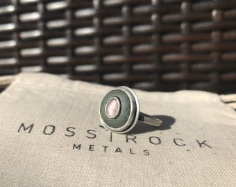 Size 8 Pink Sea Glass and Gray Beach Stone Ring, Pink and Gray, West Coast Double Stone Ring, Rustic Ring, Beach Stone Ring