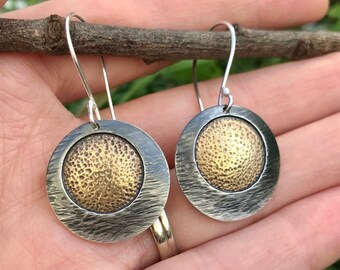 Domed Moon Studs, Moon and Sea Studs, Mixed Metal Studs, Moonlight Studs, Ocean earrings, Rustic chic earrings, Brass Studs