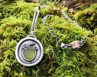 Green Sea Glass Pendant, Cedar Leaf Pendant, Rustic West Coast Pendant, Forest Pendant, Vancouver Island Nature Inspired Pendant