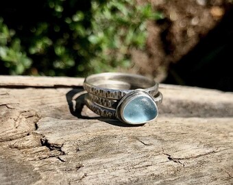 Made to Order Sea Glass Stacking Ring Set, Made to Order Beach Stone Stacking Ring Set, Green Sea Glass, Blue Sea Glass, Aqua Sea Glass