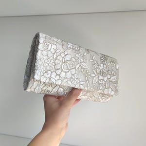 peach lace clutch bag