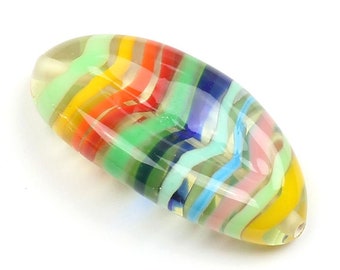 Large Handmade Czech Glass Bead, 30mm Glass Bead, Lamp Work Bead, Striped Czech Glass Bead, Rainbow Bead, Large Handmade Bead, Czech Glass