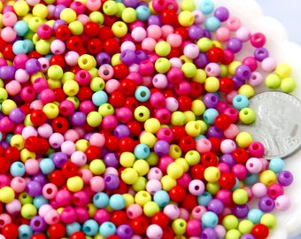 Spacer Beads - 4mm Very Tiny Round Acrylic Beads - Gumball Bubblegum Plastic or Resin Beads - Mixed Colors, Small Size Beads - 1000 pc set