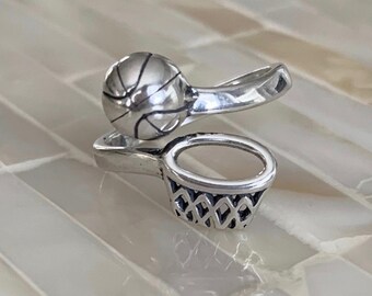 Basketball Ring- Basketball Player Gift- Basketball Jewelry- Sterling Silver- Basketball Player- Senior Gift- Basketball mom-Adjustable Size