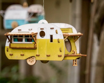 Paintable Camper Bird House playset you can snap together and use! Bring back the love of travel and camping with a miniature model trailer