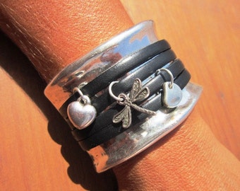 cuff bracelet, black bracelet, silver bracelet, leather bracelet, beaded Bracelets, fashion jewelry, accessories, charm Bracelet