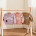 Fun seams are the design element. You knit eight rectangles and join them with a special stitch and brightly colored yarn. Sleeve panels are made to fit with easy decreases. Knit by hand or machine. Small panels make this a good carry-along project.
