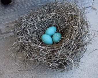 Rustic Bird Nest Handmade with Robin's Eggs Shabby Farmhouse Decor PerchAndPatina on Etsy