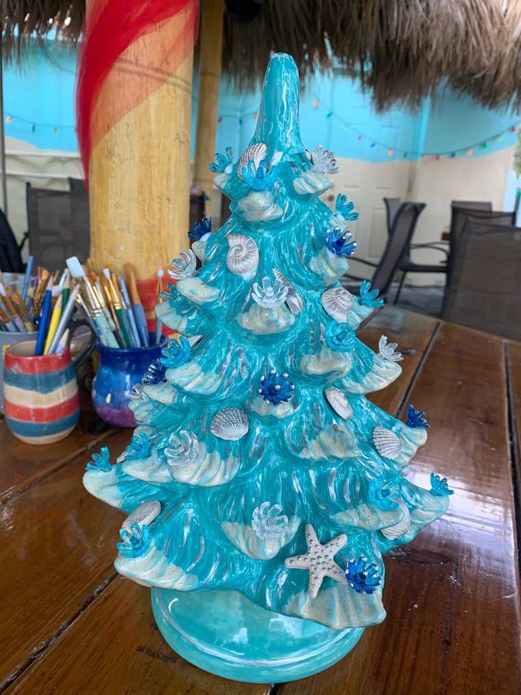 Our Custom Seashell Tree at Our Tiki Tables! -
