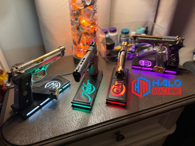 5 out of 5 starsThis is my second stand purchased from Halo, and it is a great way to display your "show" pistols. Customer service was A+. I requested a slight alteration from what was listed, and within a few minutes the line of communication was open, and after I stated what I saw in my mind the seller had sent me a digital mock up that was exactly as I had envisioned. To top it off, not only was this a custom change to the design, but I placed my order on the weekend and received it on Thursday.