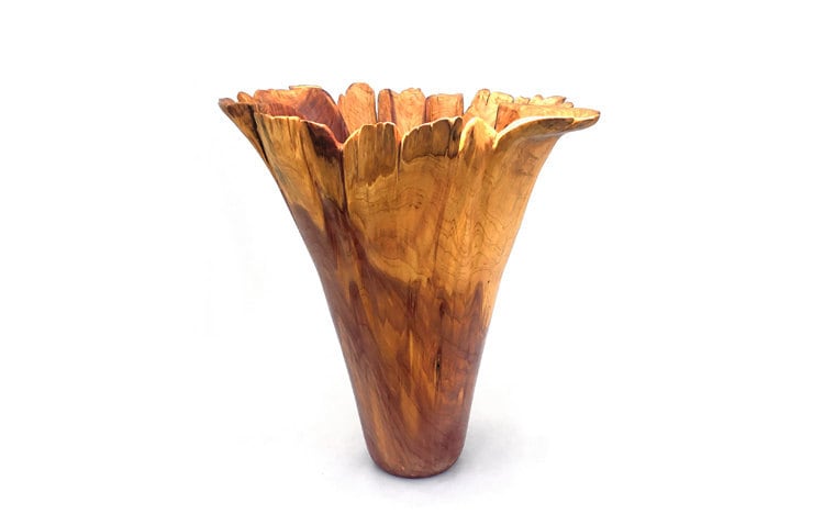 Ogni oggetto nasce da un blocco di legno massello e viene accuratamente modellato a mano, lasciando che le venature naturali guidino la forma finale. Nessun colorante, nessuna produzione di massa: solo vero legno, lavorato con cura.