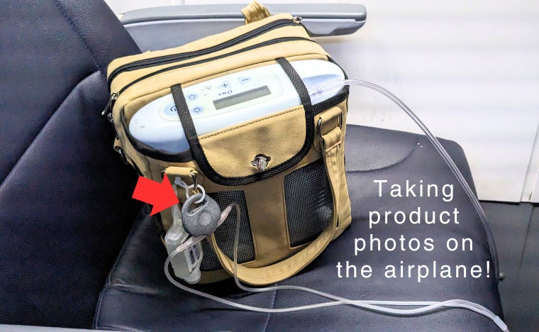 I talk about the pain oxygen users feel and how their equipment doesn’t work well for them. I show how our product, the O2 FRESH nasal cannula cover, helps to make using oxygen at home easier and more hygienic. The award won, the design and utility patents, and our good reviews. He listens and smiles.