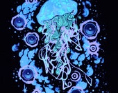 5 out of 5 starsLove the shirt sm the design is super cool!!! Its a really good print thats directly on the shirt not like those paper prints that can peel off and glows brightly!! i did hit it with my own blacklight before taking a picture so this is how it would look while fully charged. Came super fast as well!