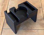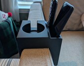 5 de 5 estrellasThis item was exactly as pictured and described. The ONLY thing I was somewhat disappointed by was wishing the side pocket (we use for remotes) was deeper because it doesn’t have a ton of value at current depth so might not be worth adding that feature (Roku remote in the slot pictured). Other than that it’s really good quality and fits like a glove. Absolutely worth it compared to the original lovesac holder given you can basically buy 2 for the price of one. Lastly, I was extremely impressed by shipping/delivery speed. I assumed processing time to create would be longer but it was delivered so quick! Will definitely continue to purchase and selfishly hope they come out with even more accessories!! Not sure how hard a table tray would be to 3D print but I’d be first in line if you did! ;)