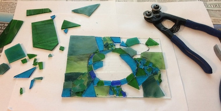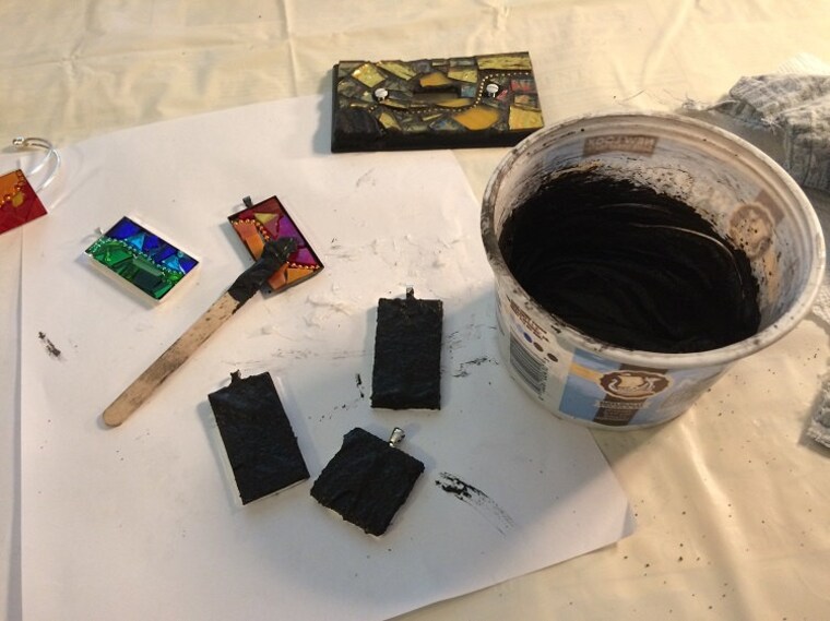All the hand-cut tiles are laid out and glued, waiting to for the next step - grouting. -