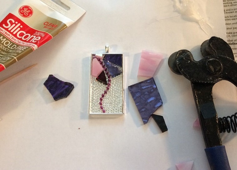 This is how I start a necklace pendant. Pick out my colors and start nipping away. -