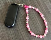 Pink Beaded E-Reader Page Turner Bracelet: Kindle Accessory Wristlet, Key Chain