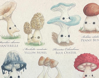 Impressão de identificação de Mushling - Poster Giclée de belas artes botânicas de cogumelo